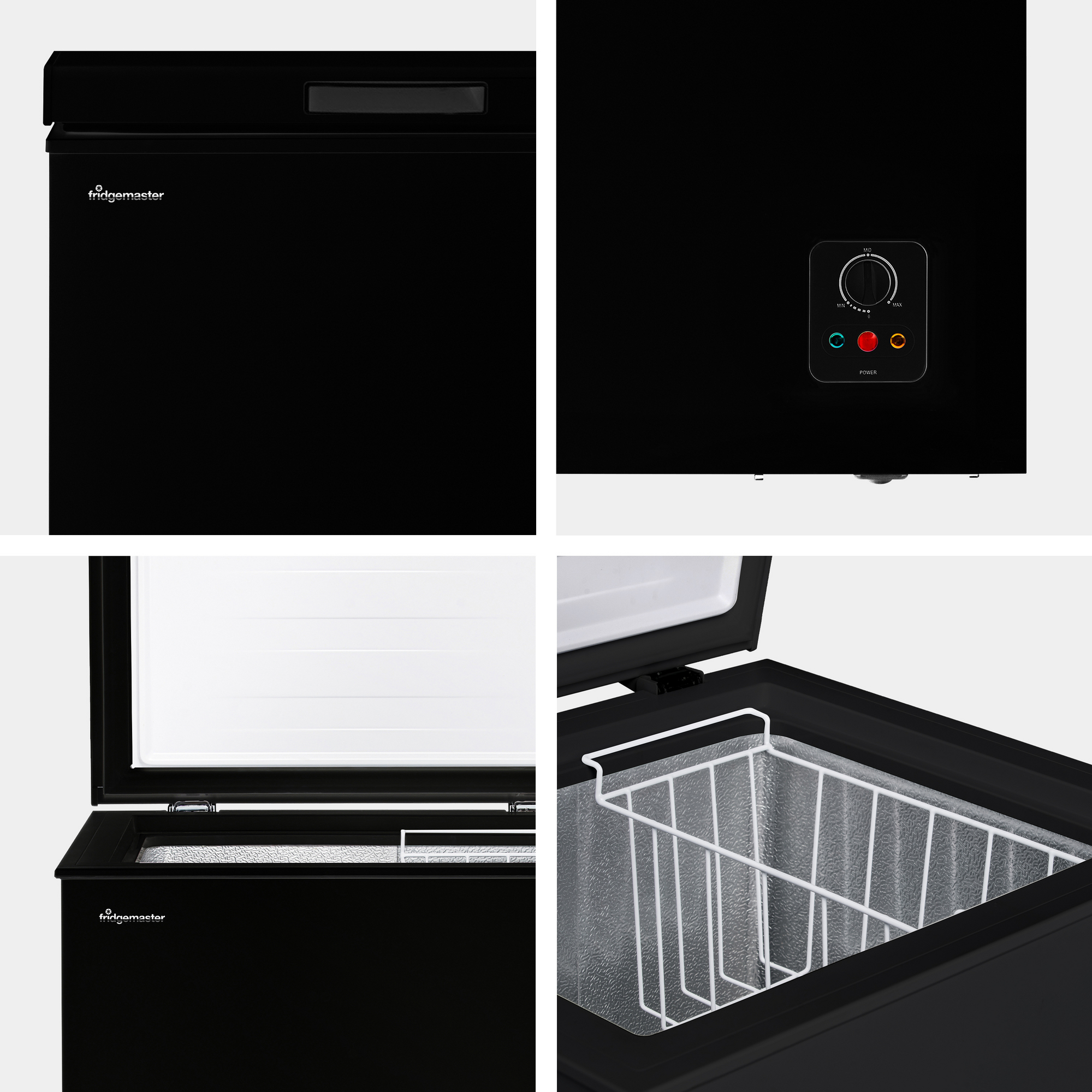 The Fridgemaster MCF96EB is a freestanding chest freezer in an elegant black finish, boasting a generous 95-litre capacity.