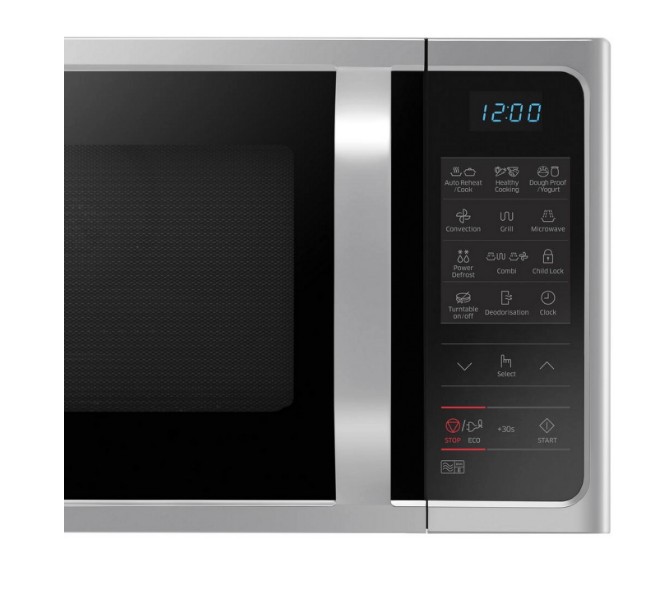 Introducing the Samsung MC28H5013AS/EU Convection Microwave Oven with a generous capacity of 28 litres, elegantly designed in a sleek silver finish.