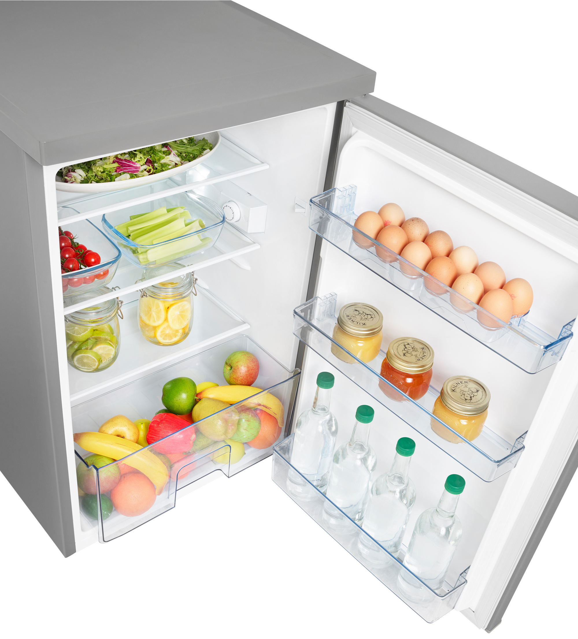 The Hisense RL170D4BCE Under Counter Larder Fridge in refined silver delivers a generous 133-litre storage space designed to meet the demands of busy households.
