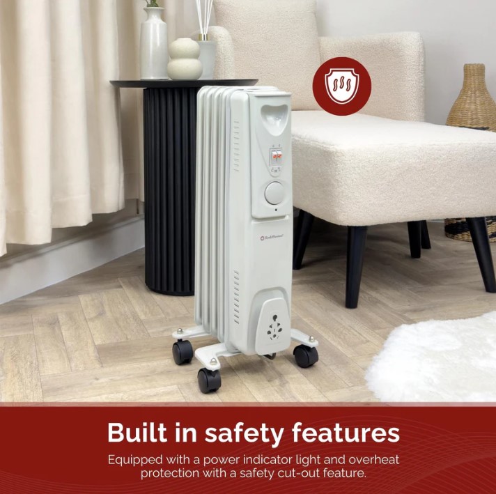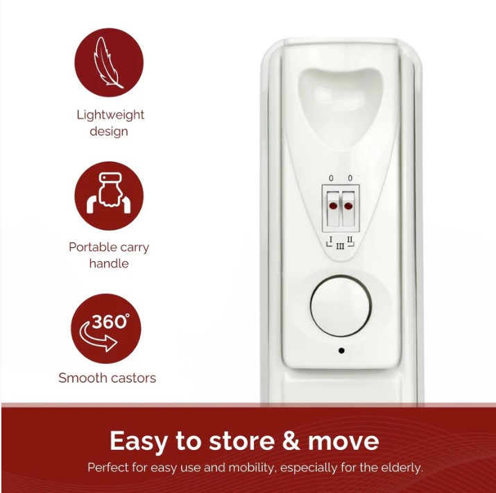 Long-lasting warmth as the heated oil maintains its temperature even when switched off, continuing to release heat for a while.