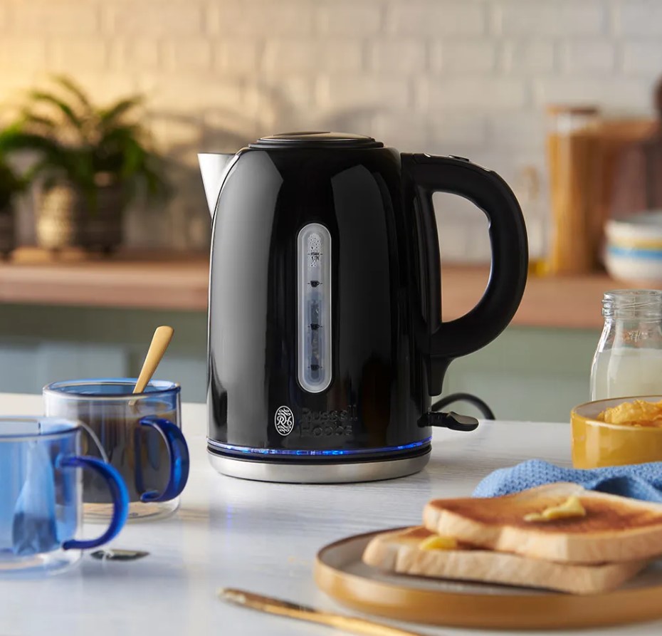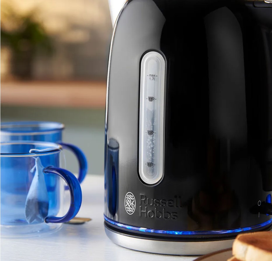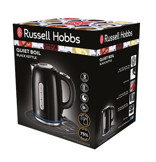 Sleek and modern, the Russell Hobbs Quiet Boil Kettle in Black has a quiet boil feature that makes it up to 75% quieter* than a standard kettle.
