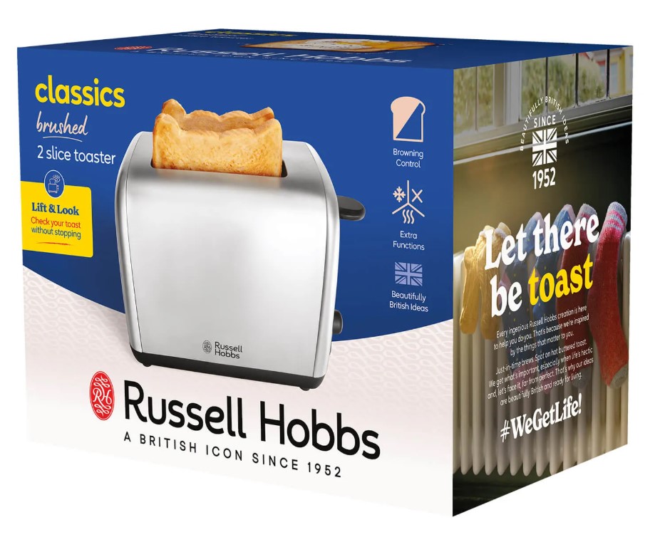 With a sleek and shiny stainless steel exterior, handy lift and look feature, and wide slots for deliciously chunky slices, what’s not to love about the Russell Hobbs Classics 2-Slice Toaster – Brushed & Polished?