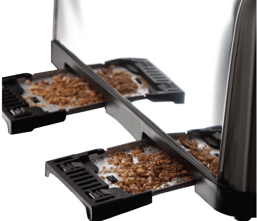 The high lift function saves your fingers from the heat when reaching for your hot crumpets and the removable crumb tray makes cleaning super simple.