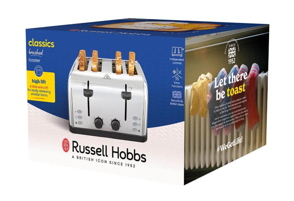 The Russell Hobbs Classics 4-Slice Toaster – Brushed brings stainless steel elegance to your worktop and with independent 2-slice carriages you can keep your cool while breezing through breakfast.