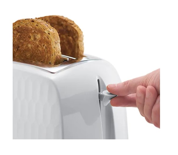 In a Premium White Plastic with a Honeycomb-Inspired Textured Design, you can enjoy a tasty slice of toast from a toaster you’re proud of.