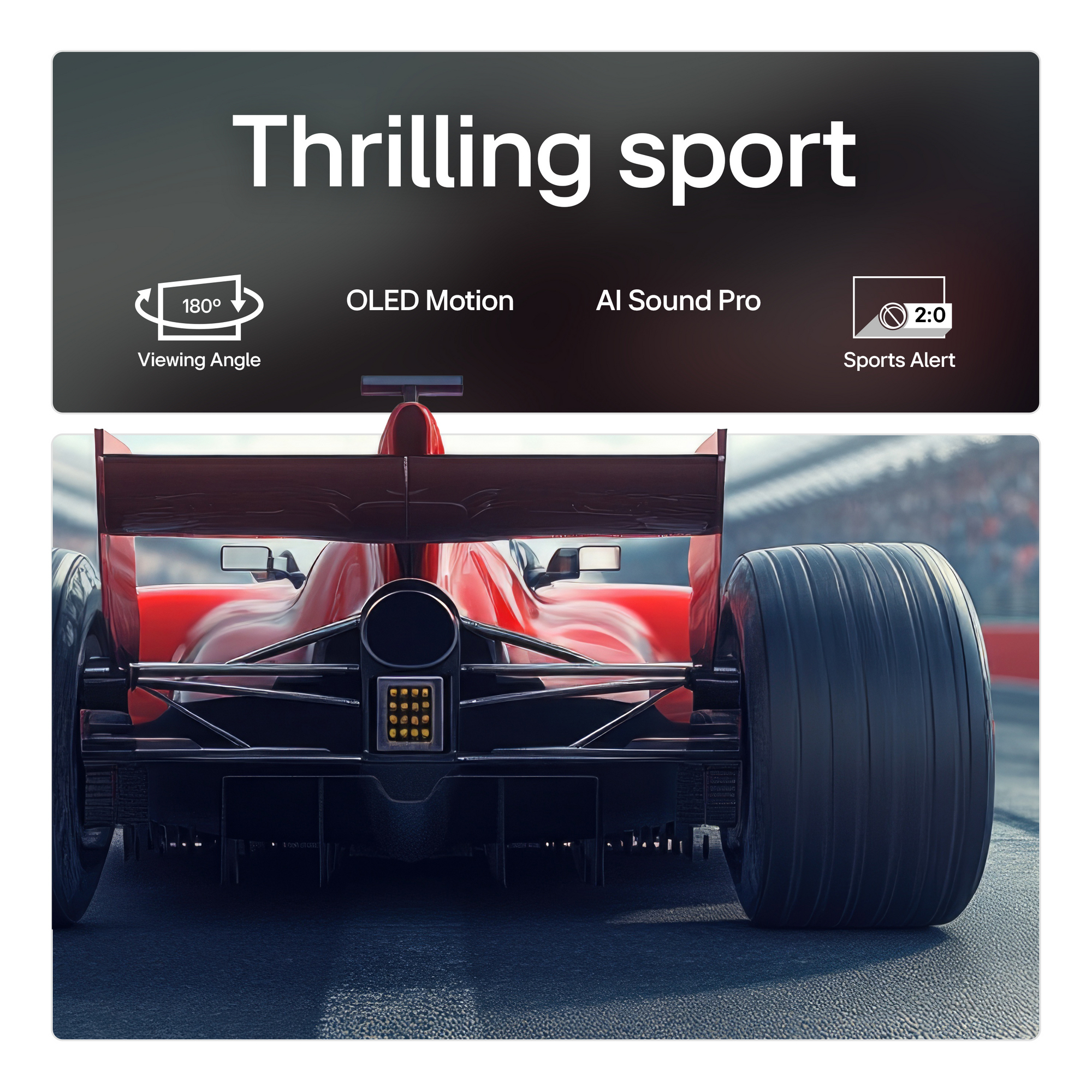 Dolby Atmos and AI Sound Pro deliver expansive virtual surround sound that matches the stunning visuals.