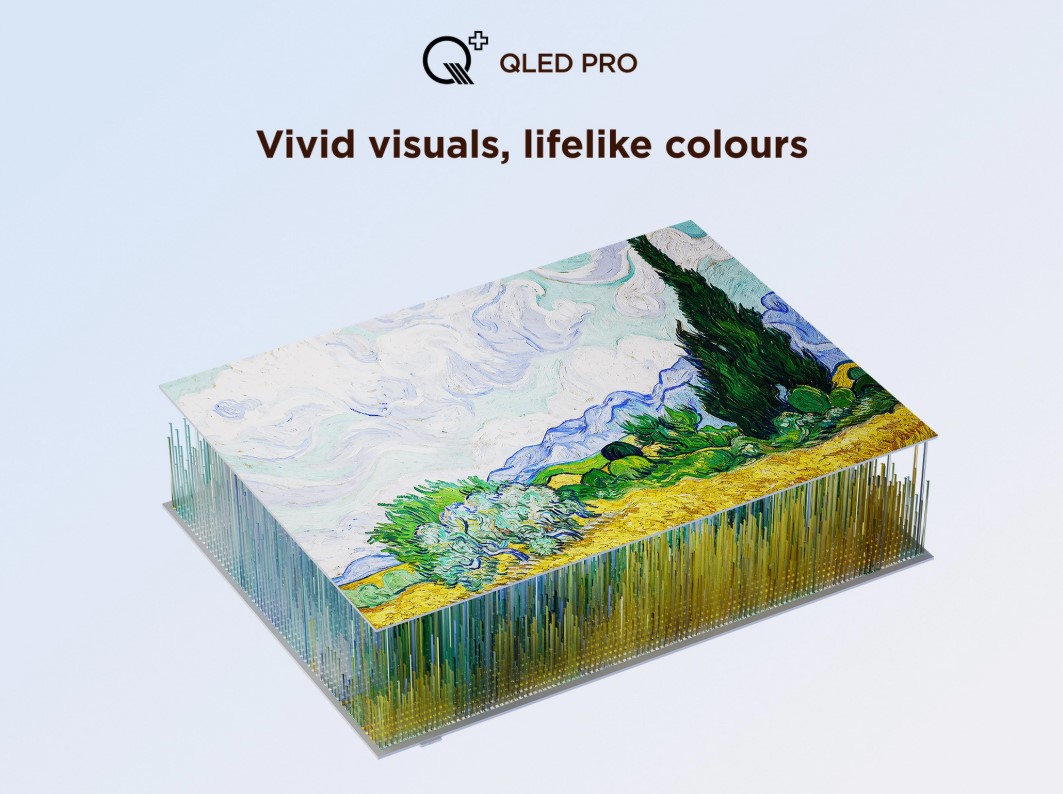 The QLED PRO panel utilises Quantum Dots to produce rich, saturated colour and high purity tones. Expect over a billion colour shades and vibrant contrast in bright or dim scenes.