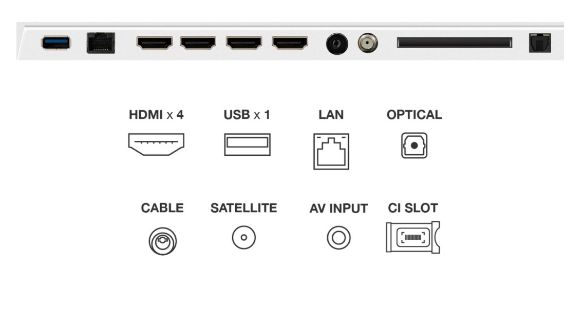 | Connectivity / Ports | HDMI 2.1 ×4, USB 3.0 ×1, USB 2.0 ×1, Ethernet, WiFi, Bluetooth |